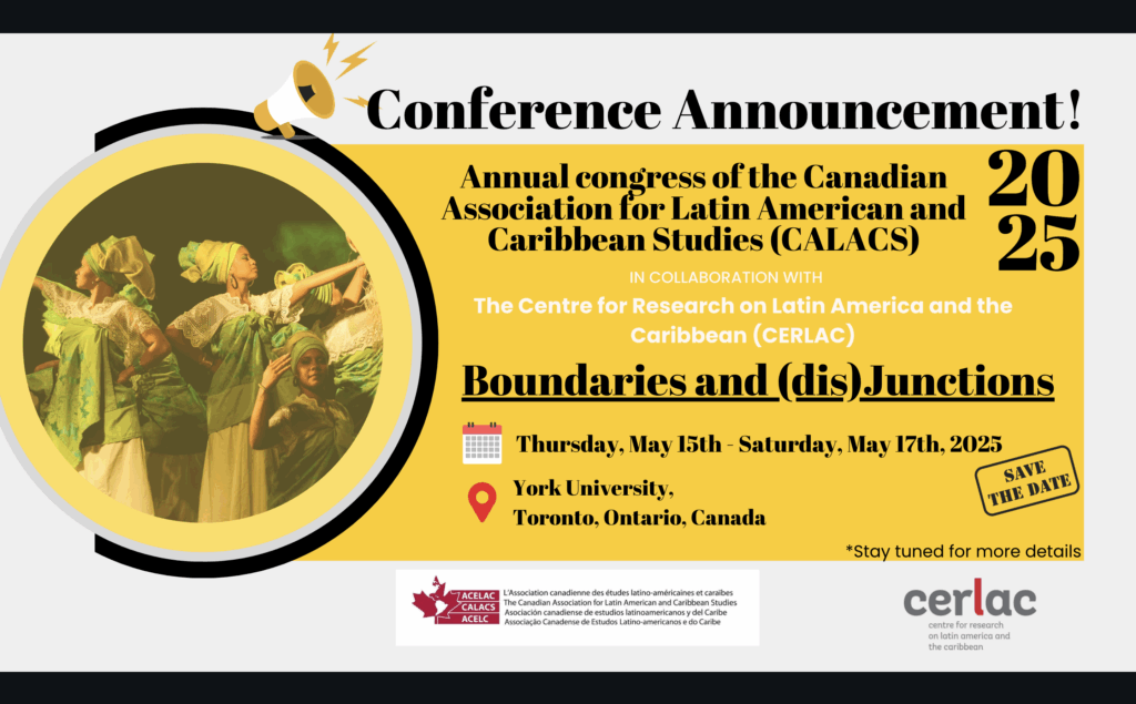 From May 15 to May 17, 2025, members of cMAS and MCL will participate in the Annual Congress of the Canadian Association for Latin American and Caribbean Studies (CALACS), 2025 at York University, Toronto, as part of the panel “Negotiating Representation: Critical Analyses of Media-arts and Cultural Practices across the Americas” organized and chaired by PhD Candidate Gabriel Juliano.