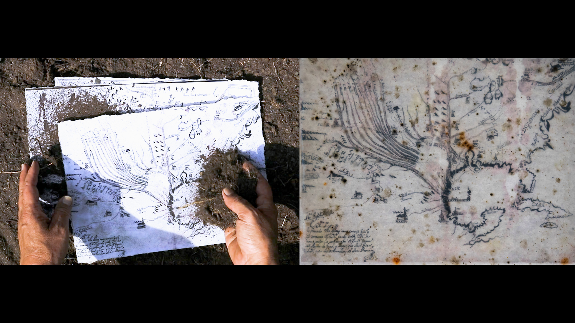 Inspired by Martinican philosopher Édouard Glissant’s distinction between archipelagic thinking as fragmentary and intuitive and continental thinking as all-encompassing and systematic, and Mexican writer Cristina Rivera Garza’s use of frottage drawing as a mnemonic technique to recover an embodied connection to place, the video features actions performed on camera and images involving different approaches to map-making.