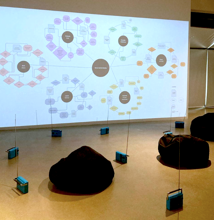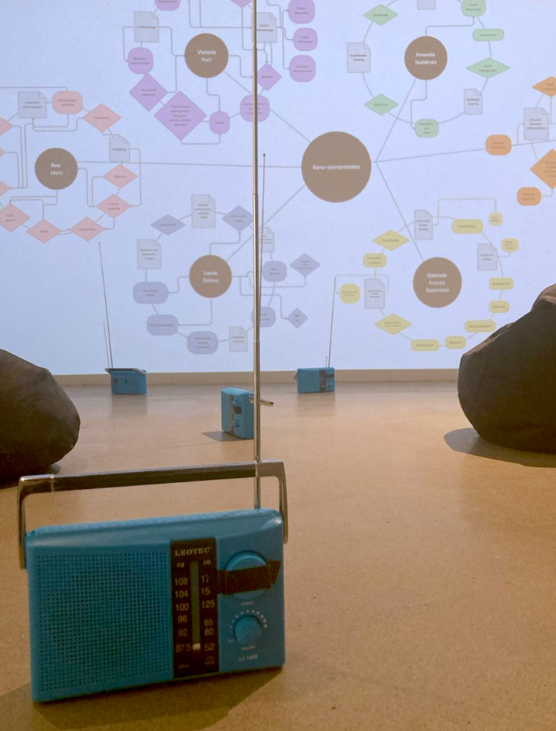 Feminist Sonographies of Situated Listening is an immersive audio installation that maps out the research connections between the multidisciplinary individual practices of the sono(soro)ridades collective. This project is part of our process to enact our approach to what we call “decolonial feminist methodologies in sound” as a contribution to the field of research-creation.
