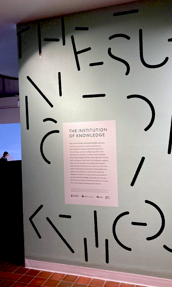 As a member of the collective Amanda Gutiérrez was invited to participate in the group exhibition The Institution of Knowledge, a research-creation exhibition and symposium organized by Geoffrey Rockwell and Natalie Loveless presented at the FAB Gallery at the University of Alberta. As part of our ongoing work developing and enacting decolonial feminist methodologies in sound, Amanda brought the invitation to participate in The Institution of Knowledge to the collective. We held several brainstorming sessions to work through ideas for the installation. In these (roughly) monthly meetings held via zoom we also discussed parallel projects that we were developing as a collective (an academic panel for LASA conference and a forthcoming book chapter). During the meetings, we also checked in on our personal lives and updated each other about our individual projects.As a collective, we are supportive of each other’s practices, personal and professional commitments. Our collaborative method of listening and working together and with each other allows each of us to decide how involved we want to be in a project. Each of us decides what role to play (i.e. leading or supporting roles; individual roles; or simply opting out of a project depending on each member’s availability and resources).