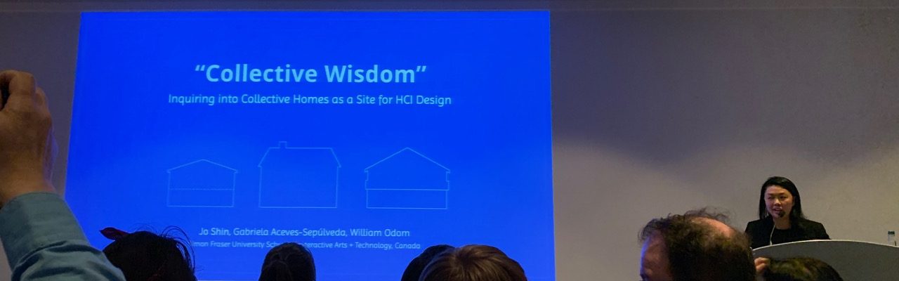 Jo Shin presented the paper ” Collective Wisdom: Inquiring into Collective Homes as a site for HCI” at the ACM CHI Conference on Human Factors in Computing Systems in the Scottish Event Campus in Glasgow. Based on her master’s degree research on three collective homes in Vancouver, Shin offers two contributions to HCI scholarship. First, an in-depth design ethnography of three collective homes, attending to the values, ownership models, practices, and everyday interactions observed in the ongoing making of these domestic settings. Second, an interpretation and synthesis of the findings to provide new opportunities for expanding the way we conceptualize and design for ‘the home’ in HCI.